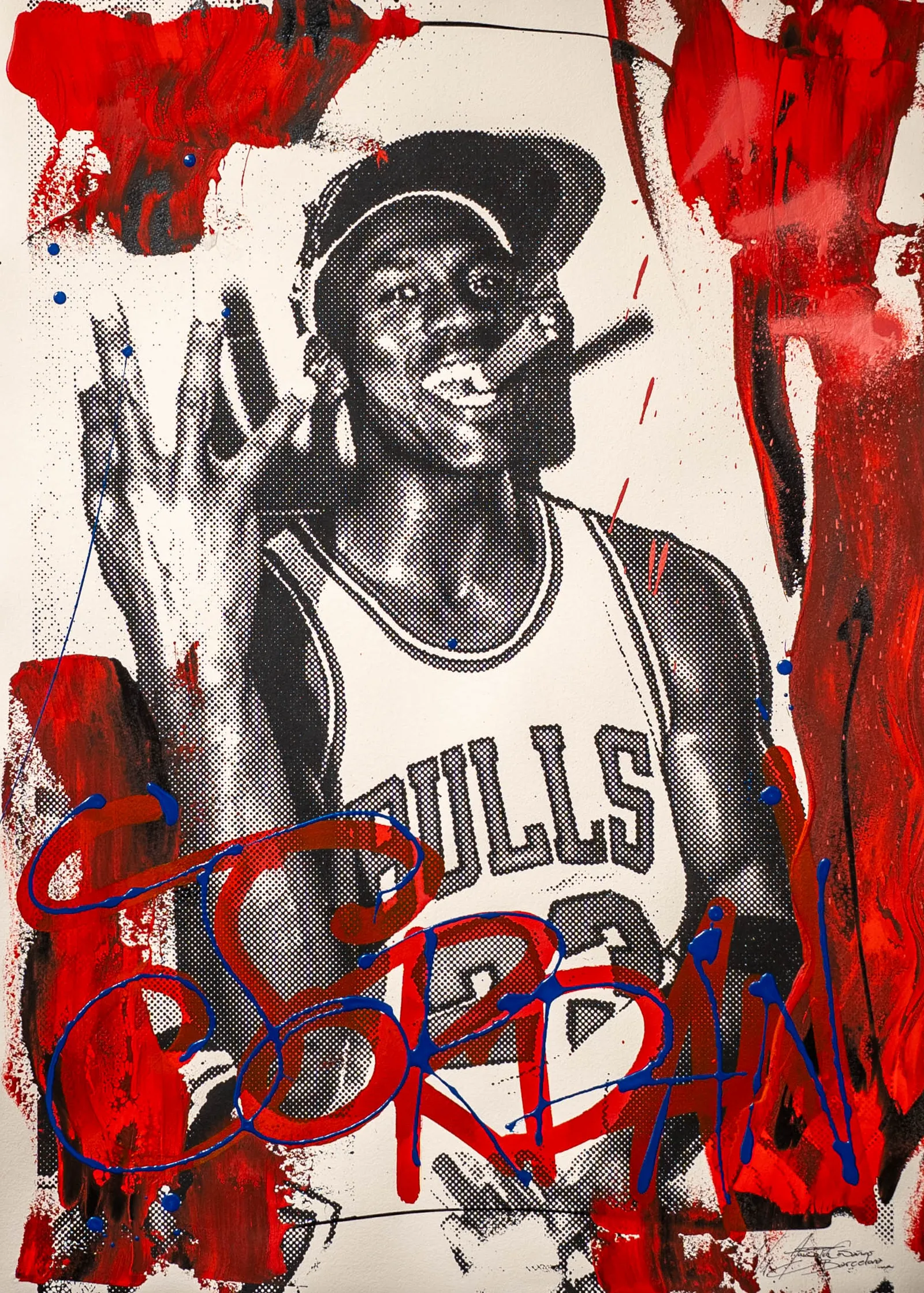 Esta serie representa un homenaje al cantante Michael Jordan. El artista utilizó la técnica de serigrafía para crear múltiples obras de arte partiendo desde la misma imagen, haciendo cada una original y única. Artist: Maxó Rennella Original Painting 🎨.